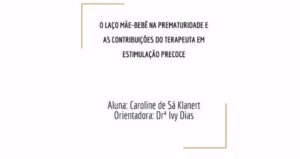 O laço mãe-bebê na prematuridade e as contribuições do terapeuta em Estimulação Precoce é o título do seu Trabalho de Conclusão, apresentado no segundo semestre/2025 para o Curso de Especialização Latu Sensu Clínica Interdisciplinar em Estimulação Precoce. Centro Lydia Coriat – UniFCV Centro Universitário Cidade Verde